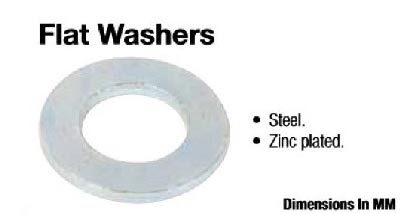 Metric flat washers made of steel and zinc plated for corrosion resistance and durability.
