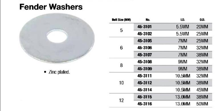 | Bolt Size (MM) | No. | I.D. (MM) | O.D. (MM) |